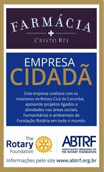 O Rotary Club de Corumbá, através do seu Presidente 2020/2021, Artur Saldanha, comunica que a Farmácia Cristo Rei em Corumbá aderiu ao Programa Empresa Cidadã.
