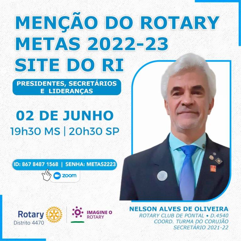 REUNIÃO VIRTUAL - MENÇÃO ROTARY - METAS 2022-23