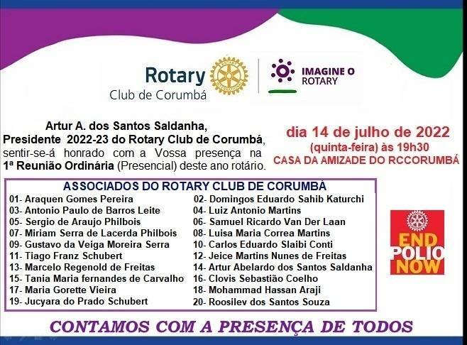 1ª REUNIÃO ORDINÁRIA DO ROTARY CLUB DE CORUMBÁ - AR 2022/2023
