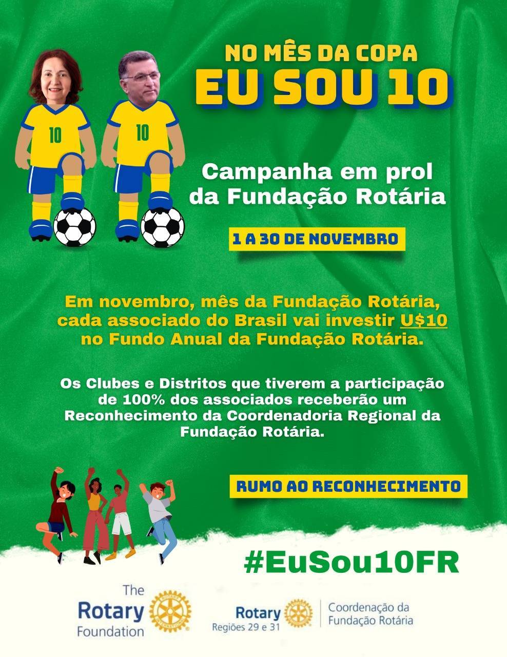 Em Novembro, Mês da Fundação Rotária, cada Associado do Brasil que Investir US$ 10 no Fundo Anual da Fundação Rotária estará entrando para o Time: #EuSou10FR