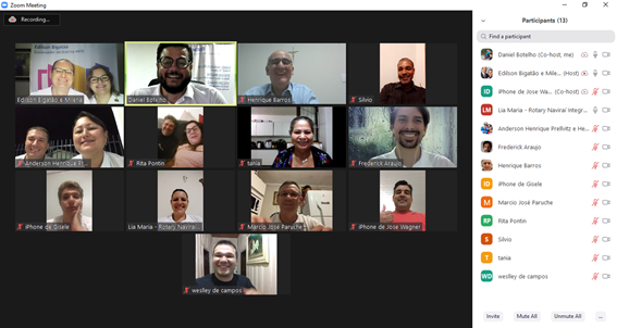 Obrigados pelo atual momento de necessárioo isolamento social, a visita oficial do Governador Edilson Bigatão, ano rotário 2020/21, se deu de forma virtual, através da plataforma zoom.